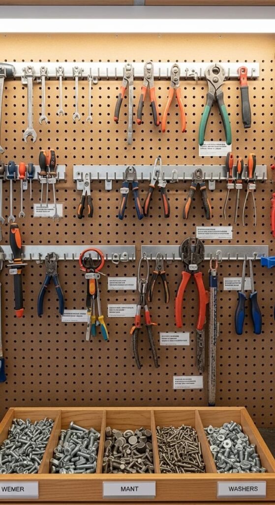 A labeled garage is a genuinely usable garage. Label every drawer, bin, and shelf section in your workspace so you always put tools back in the right place. For small hardware like screws and bolts, use a compartment organizer and label each slot with the size. Print labels for zones like “Power Tools,” “Hand Tools,” “Painting Supplies,” and “Automotive.” This system is especially helpful if multiple people share the space. A few rolls of label tape and an afternoon is all it takes.