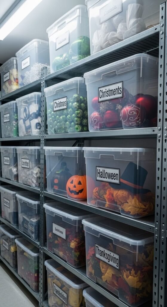 Label every holiday storage bin so you’re not opening six boxes to find the Halloween decorations. Use your label maker to print the holiday name and a brief description of contents — “Christmas — Ornaments,” “Halloween — Costumes & Candy Bowls.” Stick the label on the front and top of each bin for easy reading from any angle. Color-code with different tape colors for each season if your label maker supports it. This small step saves real frustration every time a holiday rolls around.