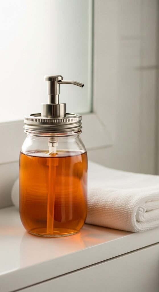 Buy a mason jar pump lid insert — available online for under $3 — and turn any mason jar into a soap dispenser. Fill it with dish soap, hand soap, or even lotion. It looks far better than plastic pump bottles and is easy to refill. Use a pint jar for the kitchen sink and a half-pint for the bathroom. This is a genuinely cheap upgrade that makes a visible difference.