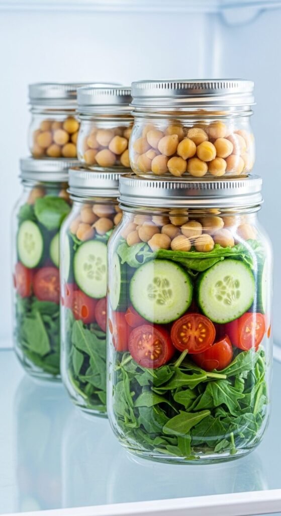 Use wide-mouth mason jars to store prepped salads, overnight oats, or leftover soups. Layer ingredients from heaviest to lightest so nothing gets soggy. Jars seal well, stack in the fridge, and let you see exactly what’s inside. Quart jars work great for salads. Half-pints are perfect for sauces or dressings. No need to buy specialty meal prep containers — jars already do the job.