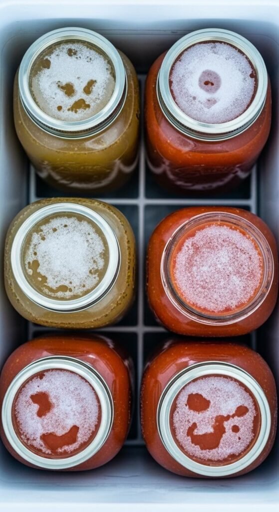 Freeze homemade soups, stocks, and broths in wide-mouth mason jars. Leave at least an inch of headspace so the liquid has room to expand without cracking the glass. Use wide-mouth jars only — narrow mouths are more likely to crack under freezer pressure. Label the lid with contents and date. Quart jars are ideal for soups. This eliminates the need for plastic freezer bags and keeps your freezer organized.