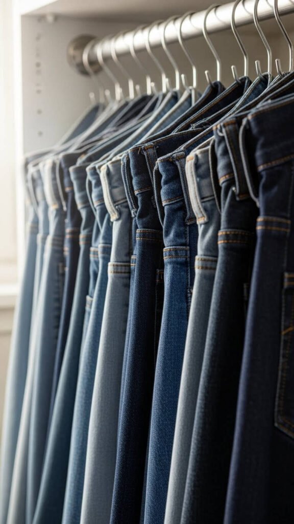 This prevents the dreaded fold wrinkles. Jeans stay ready to wear without ironing. The visible arrangement helps you remember what you own. No more buying duplicate washes.