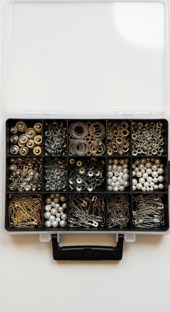 Fishing tackle boxes were practically designed for craft supplies. The removable trays and adjustable compartments are perfect for small hardware, notions, and mixed media pieces. Use one tray for sewing notions and another for jewelry findings. Most tackle boxes come with multiple trays and a secure latch. You can find decent ones for $10 to $20 at sporting goods stores or online. They stack easily and are portable if you craft in different rooms or take supplies to classes.