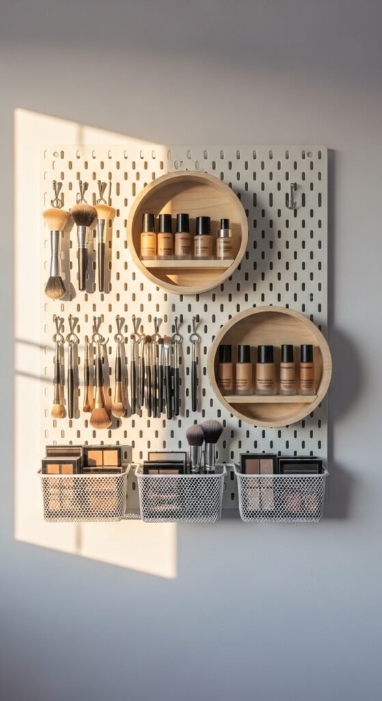 1. Pegboard Makeup Wall