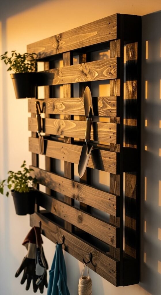 12. Use a Repurposed Pallet as a Wall Organizer