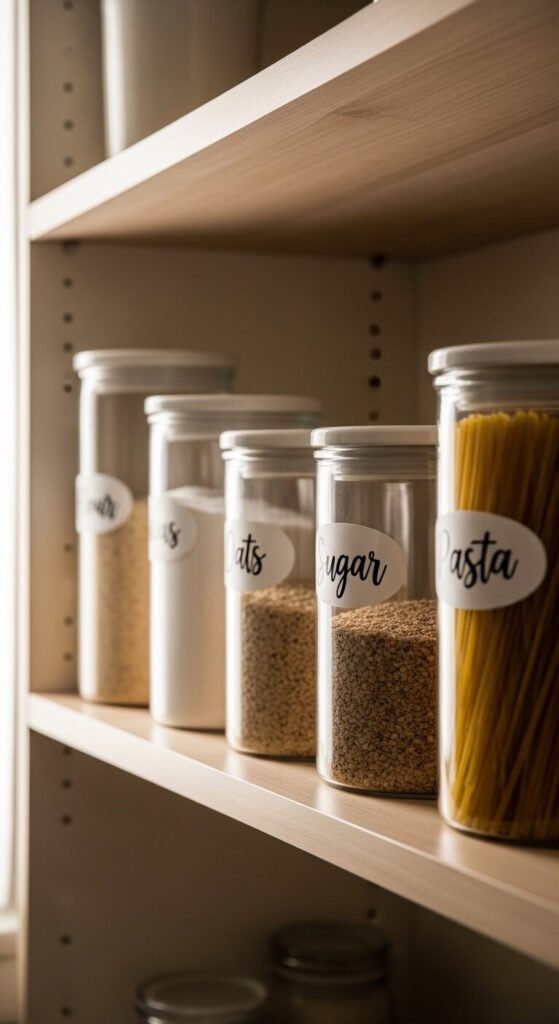 Labels sound obvious, but most people skip them. Without labels, you second-guess containers and waste time opening lids to check contents. Use a label maker, masking tape, or chalkboard labels — all cheap options. Label shelves too, not just containers. When every family member knows where things live, things actually get put back. This small habit keeps your organized cabinet from sliding back into chaos within a week.