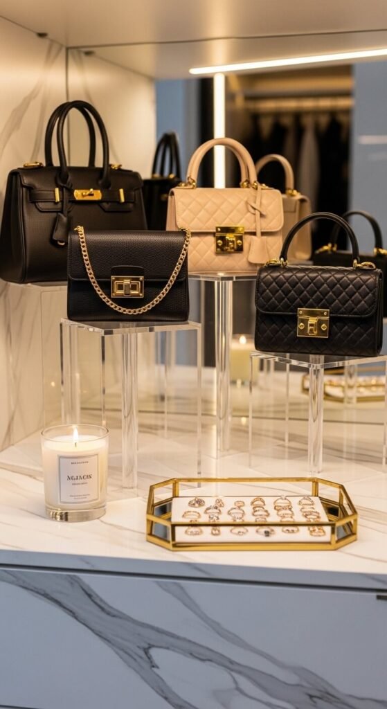 - Display your favorite handbags on a shelf at eye level