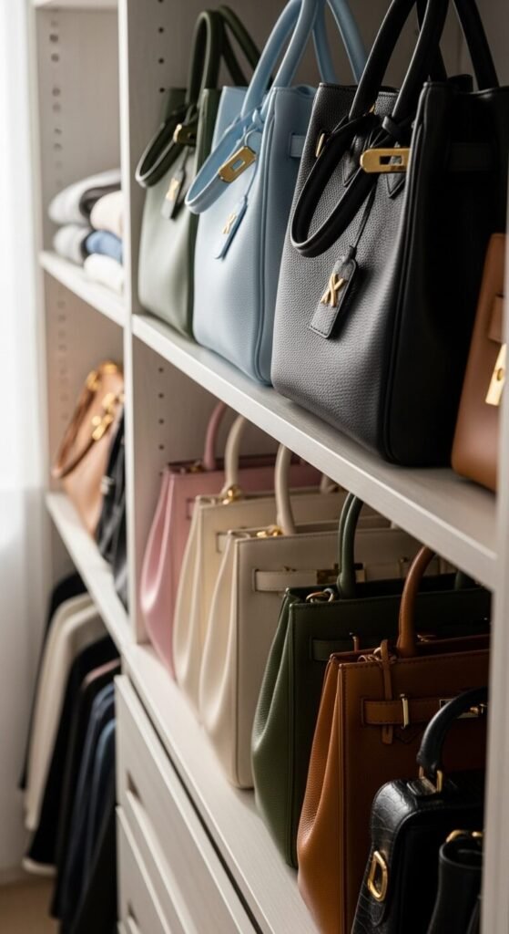 Stacking bags is one of the most common storage mistakes. Heavy bags on top crush lighter ones underneath, flatten handles, and distort hardware over time.