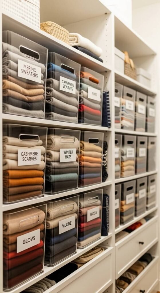 - Cotton canvas storage bags — great for items that need to breathe, like wool and cashmere